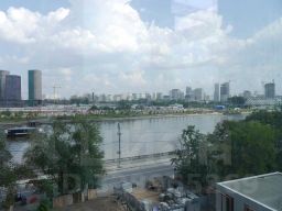 Окна офиса выходят на набережную, панорамное остекление в пол позволяет любоваться прекрасными видами на реку и город.