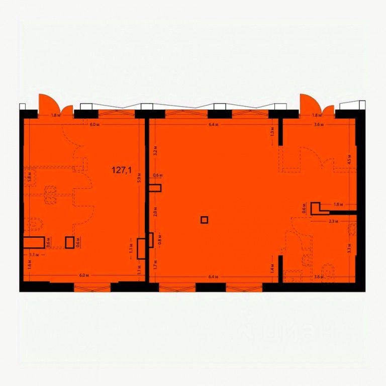 - Открытая планировка, возможно объединить несколько помещений