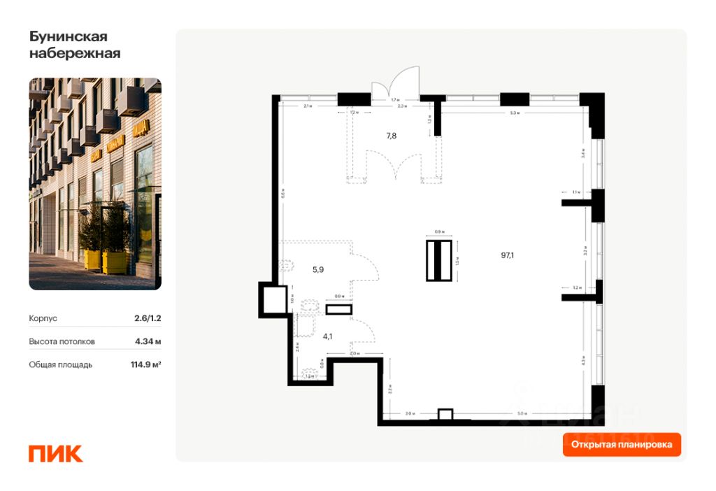 Продаётся нежилое помещение свободного назначения в квартале ПИК Бунинская набережная.