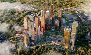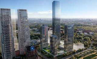 - Окружение из башен до 60 этажей (реальный объект, но не в Хамовниках)