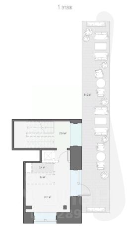 Площадь первого этажа - 47,3 кв.м. с высотой потолка 3,86 м. Площадь 2 этажа - 241,1 кв.м. с высотой потолка 3,95 м.