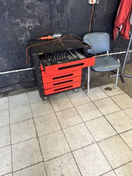 Весь необходимый иструмент для работы в том числе спец ключи для ГРМ и так далее. Шкаф с запчастями по мелочи, фильра, масла, салники, РМК тормозов и так далее.