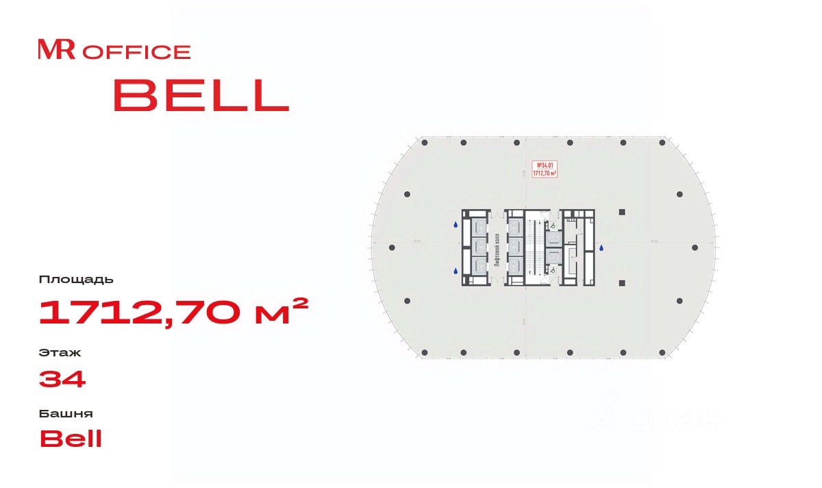 Продается офисное помещение 1712.70 м² на 34 этаже в новом небоскребе класса Prime — БЦ BELL на Белорусской от бренда MR Office.