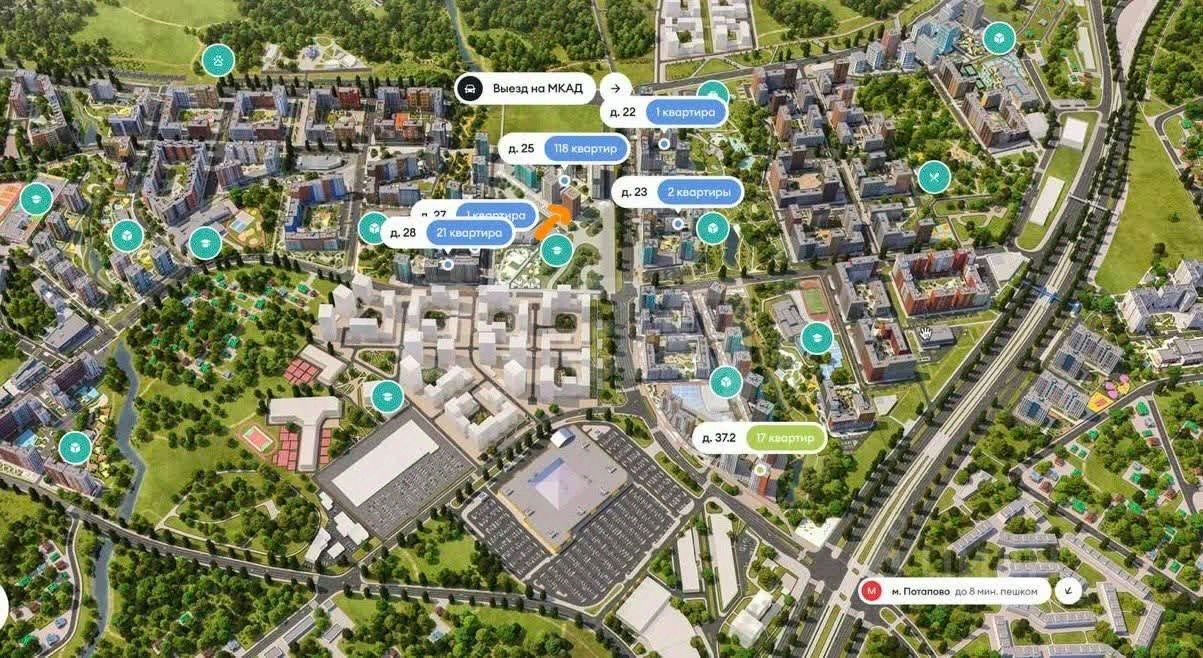 Рядом станция метро "Потапово" (8 мин пешком), удобный выезд на МКАД и Калужское шоссе.