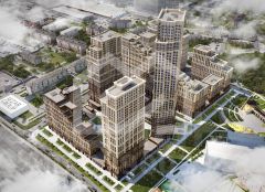 -на территории — школа на 700 мест, детский сад на 300 мест, фудмолл в стиле "Депо", прогулочные зоны;
