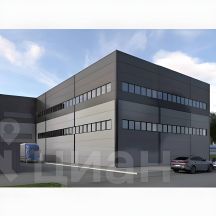 Пpoизводственно-складской блок является частью здания. Помещение имеет 2 уровня, в тч. антресоль и 2-й свет в объёме 1-го этажа с высотой 8,6 - 9,1 м, 2-й этаж высотой 5,4 - 5,7 м. Включает в себя: производственно-складские площади с воротами докового типа и офисные помещения с санузлами. Вокруг здания будет организована асфальтированная площадка для автостоянки легкового и грузового транспорта.