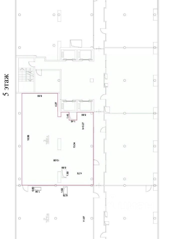 Офисное помещение расположено в главном корпусе на 5 этаже