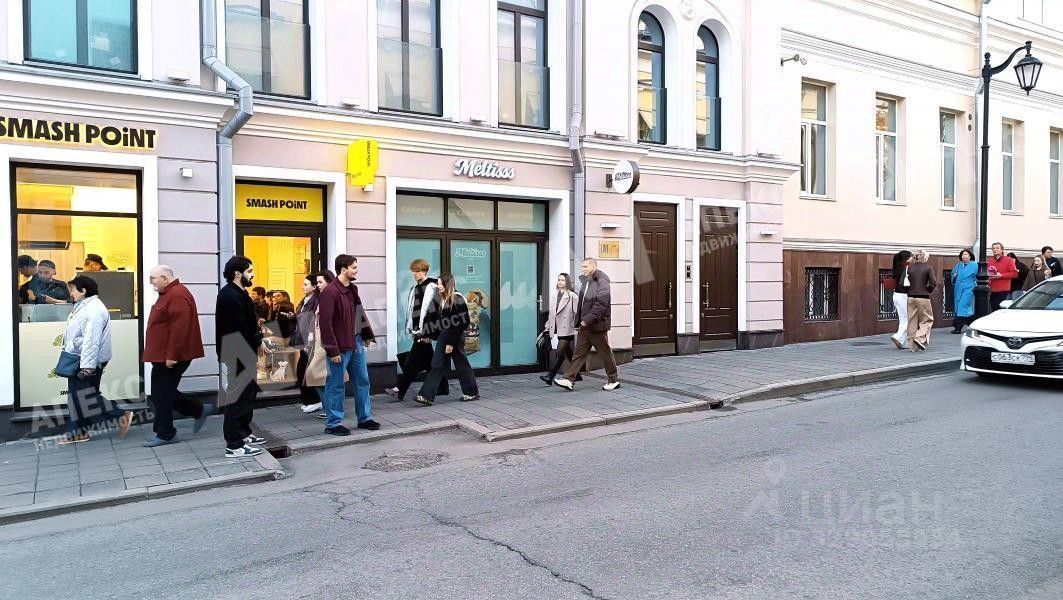 Интенсивный пешеходный трафик, первая линия, престижный район Патриарших прудов в историческом и деловом центре Москвы, в непосредственной близости расположены бизнес-центры и элитные ЖК.