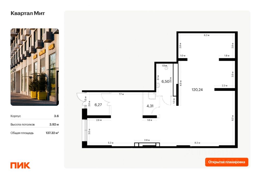 - Открытая планировка, возможно объединить несколько помещений