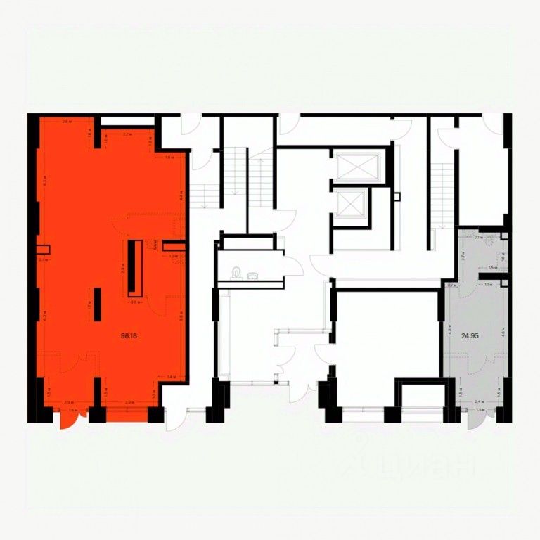 - Открытая планировка, возможно объединить несколько помещений