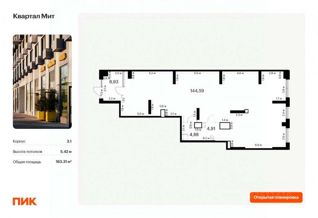- Открытая планировка, возможно объединить несколько помещений