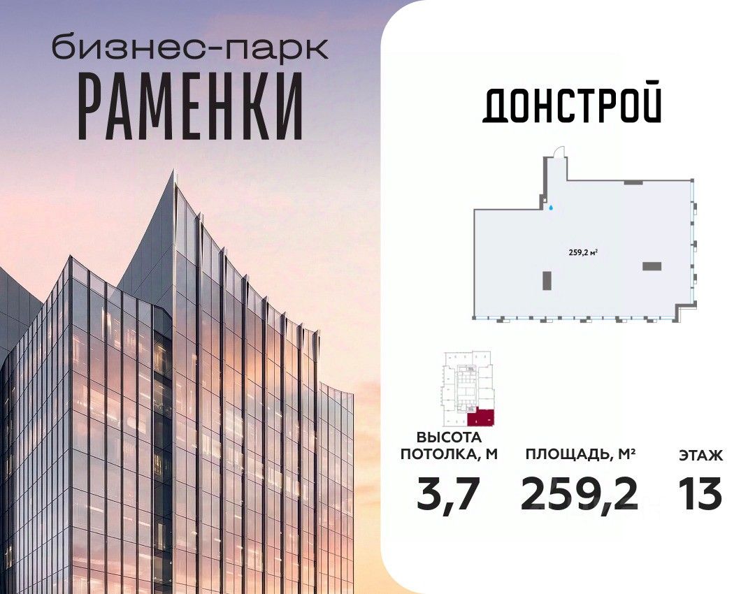 Бизнес-парк "Раменки" - деловое пространство класса А, сочетающее технологичность с балансом между работой и жизнью. Здание расположено на границе ландшафтного заказника в Раменках, в 20 минутах от центра Москвы, в пешей доступности от станций метро и МЦД. Бизнес-парк соответствует высшим стандартам своего класса: ультрасовременный экстерьер, новейшие технологии в инженерии, комфортный паркинг, элегантные лобби, разнообразные планировки. ОФИСНЫЕ ПРОСТРАНСТВА Планировочные решения соответствуют высшим стандартам офисных зданий класса А. Геометрия лотов и расположение колонн обеспечивают высокую вариативность планировок и гибкую модификацию пространства. Представлены лоты площадью 50-15300 м2: от домашнего офиса до офиса с террасой или штаб-квартиры. АРХИТЕКТУРА Концепция офисного центра разработана экспертами в создании жилых, общественных и промышленных проектов - бюро MARKS GROUP. Это эксклюзивный продукт, идеально вписанный в окружающий ландшафт и призванный стать архитектурной доминантой района. - Высота здания - 33 этажа; - Общая площадь здания - 81 509 м2; - Высота потолков на офисных этажах 3,7-4,5 м; - Панорамные виды на город, начиная с 3 этажа. ОБЩЕСТВЕННЫЕ ПРОСТРАНСТВА В бизнес-парке созданы все условия для гармоничной и продуктивной рабочей атмосферы. - Большой ресторан с просторной верандой - Корпоративное кафе, - Минимаркет, - Торговая галерея, - Фитнес-центр ДОНСПОРТ и другие сервисы. БЛАГОУСТРОЙСТВО Благоустройство выполнено на двух уровнях. Внизу - входная площадь с дроп-офф, садом камней, открытой террасой ресторана и павильоном для курения. На кровле второго этажа - общественная терраса-сад площадью почти 100 м с креативным озеленением, с зонами отдыха и общения. ПАРКИНГ Четырехуровневый отапливаемый подземный паркинг рассчитан на 243 машиноместа, включая 25 машиномест для электромобилей. Специальные места предусмотрены для мото- и велотранспорта. ИНФРАСТРУКТУРА Бизнес-парк расположен рядом с новым кварталом, в котором уже действует более 50 объектов инфраструктуры: рестораны и кафе, фитнес-центры и салоны красоты, супермаркеты и пункты выдачи заказов.