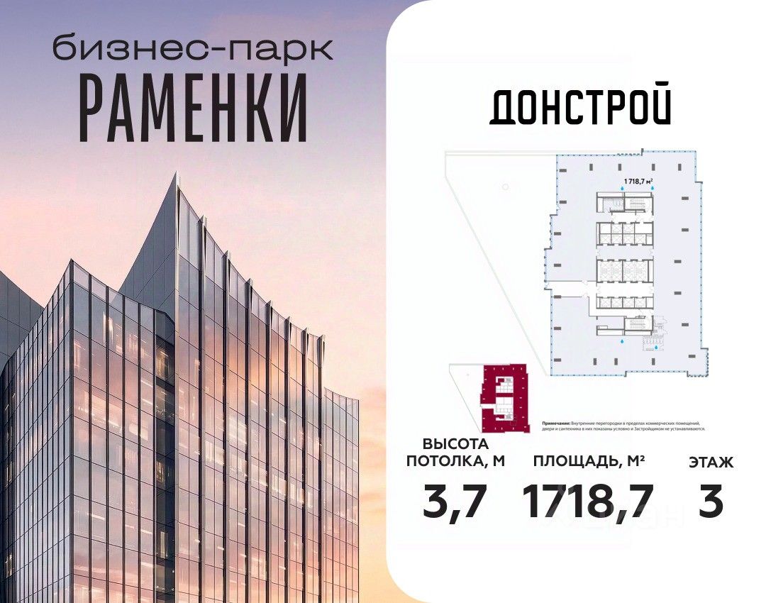 Бизнес-парк "Раменки" - деловое пространство класса А, сочетающее технологичность с балансом между работой и жизнью. Здание расположено на границе ландшафтного заказника в Раменках, в 20 минутах от центра Москвы, в пешей доступности от станций метро и МЦД. Бизнес-парк соответствует высшим стандартам своего класса: ультрасовременный экстерьер, новейшие технологии в инженерии, комфортный паркинг, элегантные лобби, разнообразные планировки. ОФИСНЫЕ ПРОСТРАНСТВА Планировочные решения соответствуют высшим стандартам офисных зданий класса А. Геометрия лотов и расположение колонн обеспечивают высокую вариативность планировок и гибкую модификацию пространства. Представлены лоты площадью 50-15300 м2: от домашнего офиса до офиса с террасой или штаб-квартиры. АРХИТЕКТУРА Концепция офисного центра разработана экспертами в создании жилых, общественных и промышленных проектов - бюро MARKS GROUP. Это эксклюзивный продукт, идеально вписанный в окружающий ландшафт и призванный стать архитектурной доминантой района. - Высота здания - 33 этажа; - Общая площадь здания - 81 509 м2; - Высота потолков на офисных этажах 3,7-4,5 м; - Панорамные виды на город, начиная с 3 этажа. ОБЩЕСТВЕННЫЕ ПРОСТРАНСТВА В бизнес-парке созданы все условия для гармоничной и продуктивной рабочей атмосферы. - Большой ресторан с просторной верандой - Корпоративное кафе, - Минимаркет, - Торговая галерея, - Фитнес-центр ДОНСПОРТ и другие сервисы. БЛАГОУСТРОЙСТВО Благоустройство выполнено на двух уровнях. Внизу - входная площадь с дроп-офф, садом камней, открытой террасой ресторана и павильоном для курения. На кровле второго этажа - общественная терраса-сад площадью почти 100 м с креативным озеленением, с зонами отдыха и общения. ПАРКИНГ Четырехуровневый отапливаемый подземный паркинг рассчитан на 243 машиноместа, включая 25 машиномест для электромобилей. Специальные места предусмотрены для мото- и велотранспорта. ИНФРАСТРУКТУРА Бизнес-парк расположен рядом с новым кварталом, в котором уже действует более 50 объектов инфраструктуры: рестораны и кафе, фитнес-центры и салоны красоты, супермаркеты и пункты выдачи заказов.