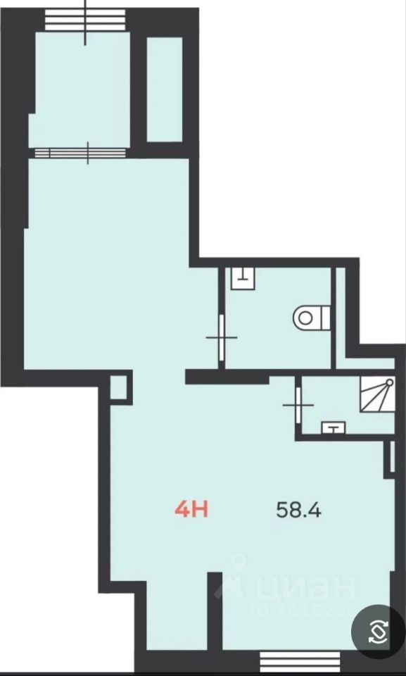 общая площадь 58,4 м²;