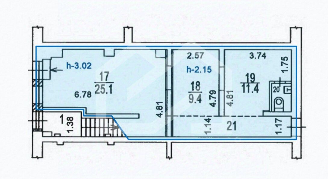 -высота потолков: от 2.15 до 3 м.