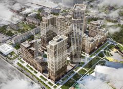 -на территории — школа на 700 мест, детский сад на 300 мест, фудмолл в стиле "Депо", прогулочные зоны;