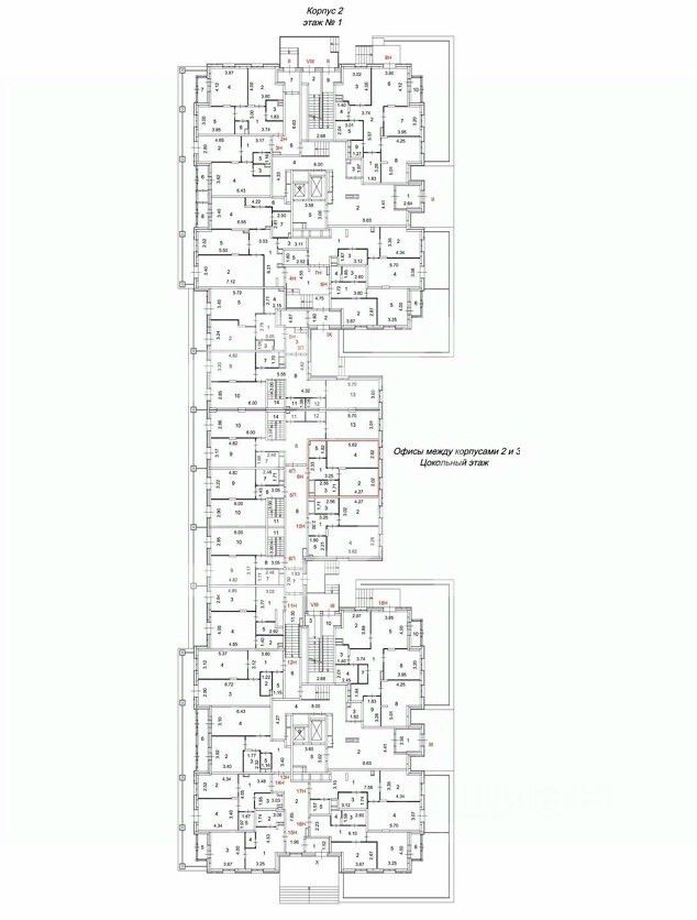 1158348. Предлагаем помещение свободного назначения в ЖК "Большая семёрка", площадью 45.6 кв. м, расположенное на цокольном этаже 17-этажного жилого дома. Помещение: 9Н между корпусами 2 и 3. Без комиссии для покупателя.