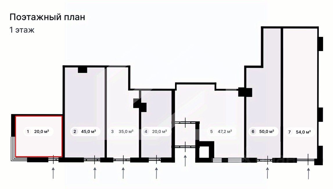 1163420. Предлагаем помещение свободного назначения, площадью 20 кв. м., расположенное на первом этаже 26-этажного жилого дома. Без комиссии для покупателя.