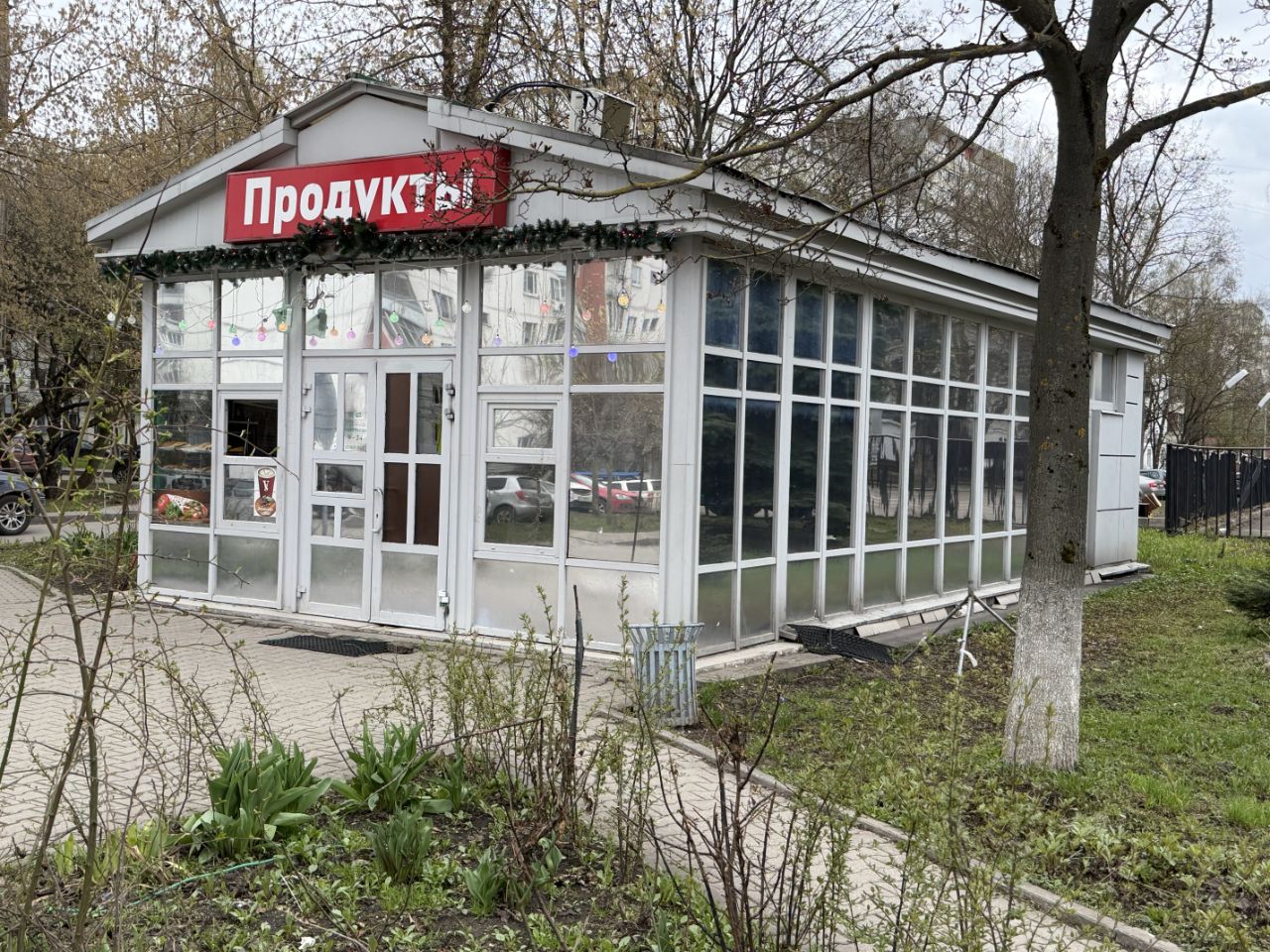 Располагается в 1 мин пешком от метро на пути пешеходного трафика к жилым массивам.