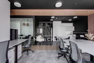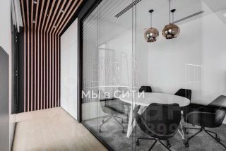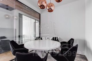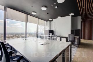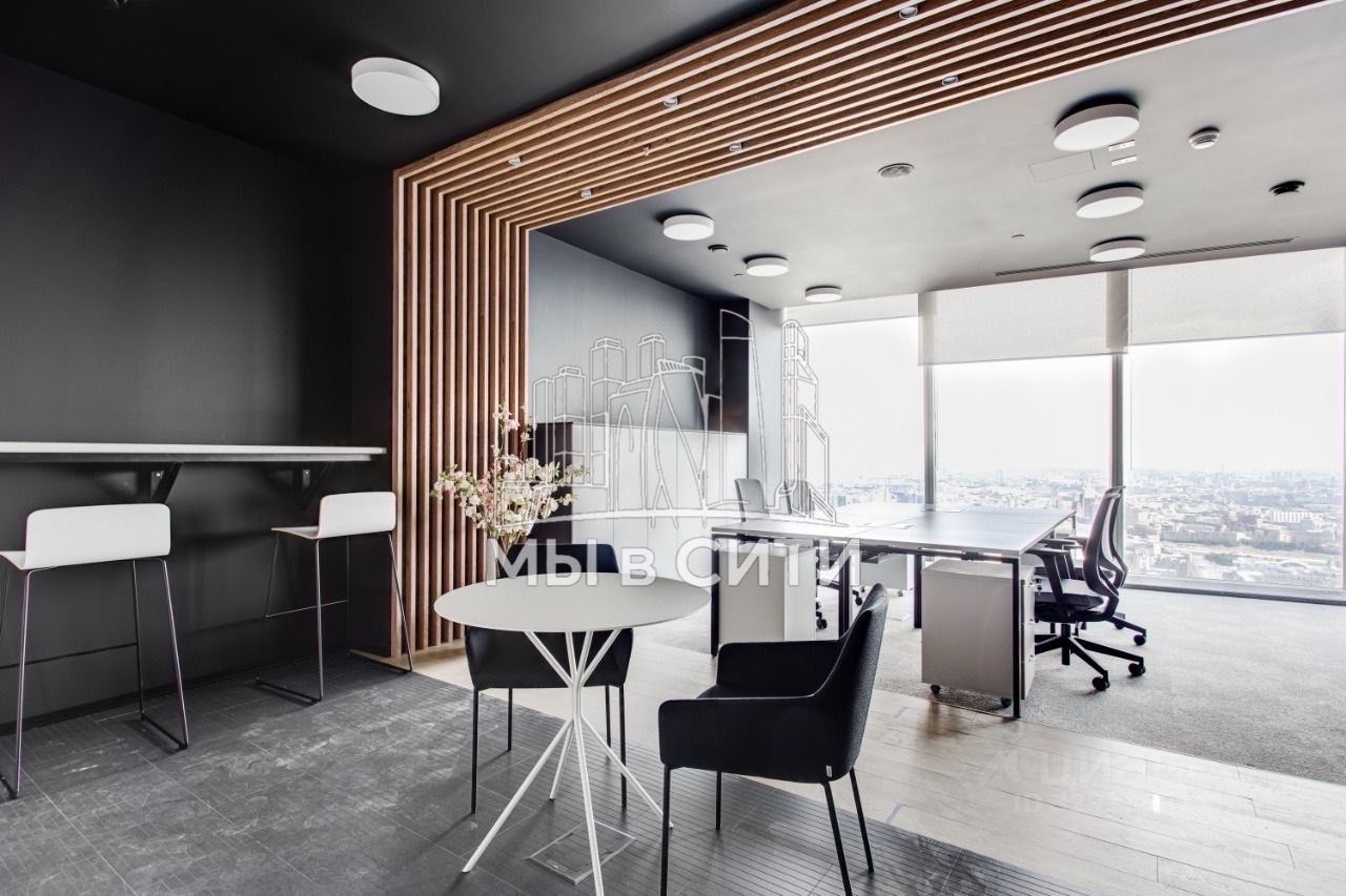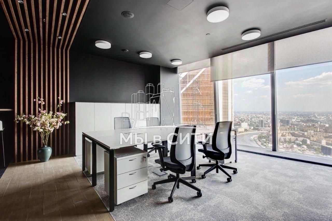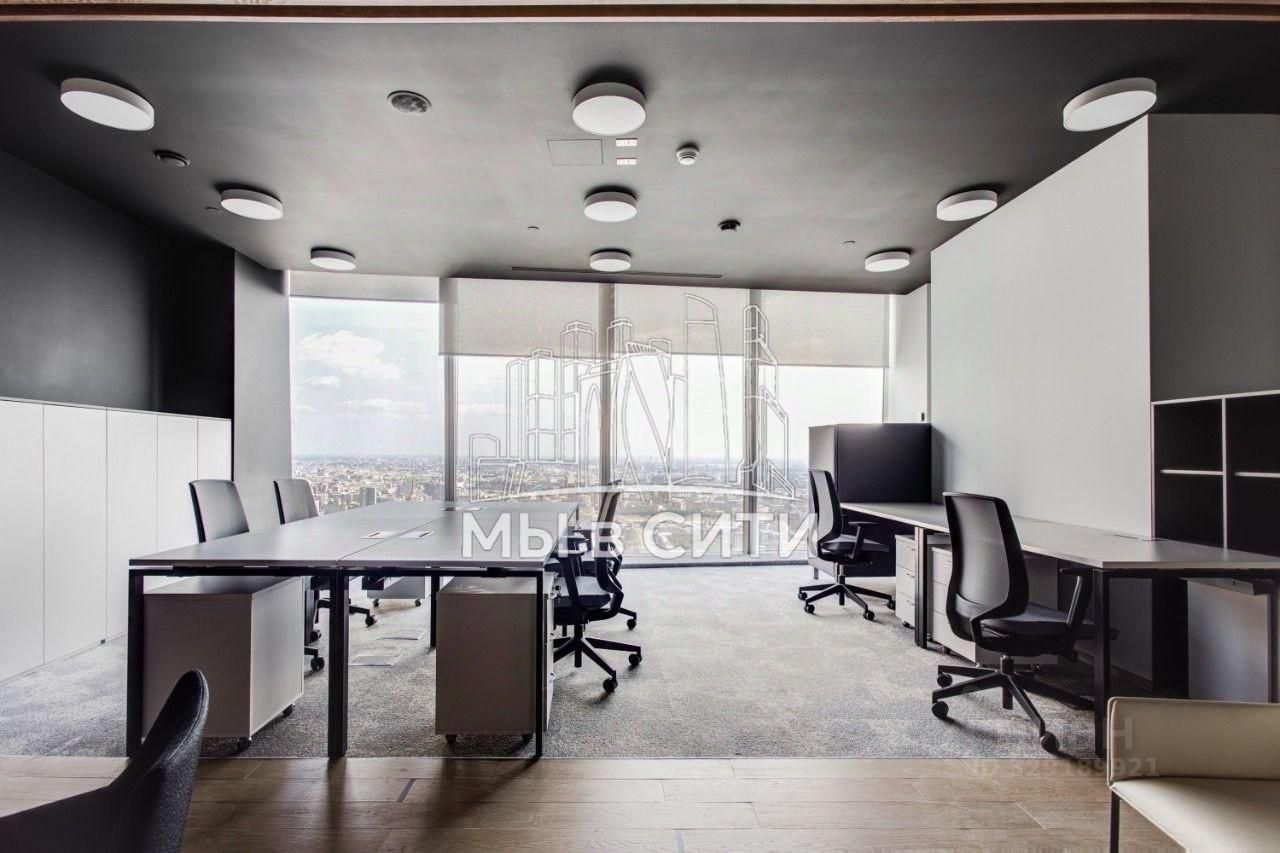Просторный офис с видом на башни делового комплекса и панораму города, в МФК Федерация Восток. Планировка: опенспейс, отдельный кабинет, переговорная; кухонная зона; санузел.