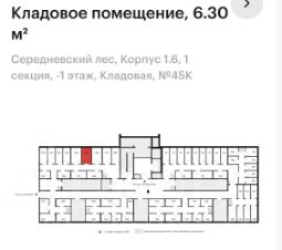 Продам кладовку 6.3 м2. На -1 этаже, рядом с грузовым лифтом. Чистая, теплая, сухая. Установлены промышленные стеллажи.