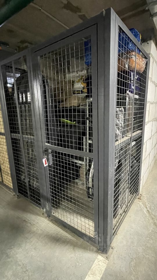Кладовка 2.1 кв.м. в теплом подземном паркинге дома. Рядом с лифтом. Установлено два стеллажа на 2 и 5 полок. Я собственник