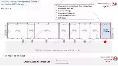 Транспорт: отличная локация с выездом Профсоюзную, Ленинский проспект, Варшавское и Каширское шоссе. Равное расстояние до ТТК и МКАД - удобная логистика для разных сфер бизнеса.