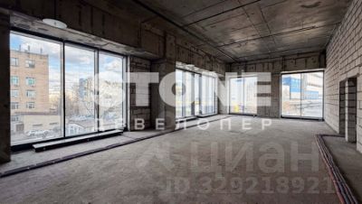 Окна в пол обеспечивают оптимальный уровень освещения. Помещение передается без отделки.