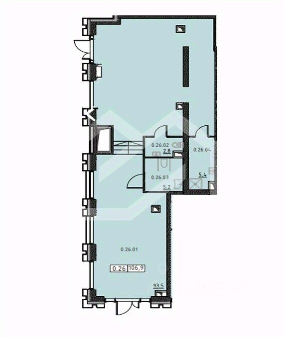 1077539. Предлагаем помещение свободного назначения в ЖК "Назаре", площадью 106.9 кв. м, расположенное на первом этаже 24-этажного жилого дома. Так как корректный адрес отсутствует на Яндекс.Картах, введен ближайший. Без комиссии для покупателя.
