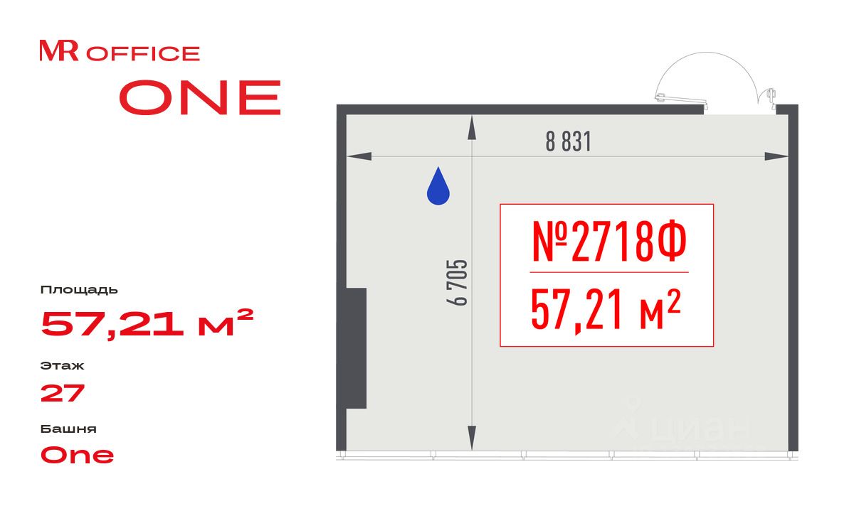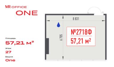 Продается офисное помещение 57.21 м² на 27 этаже в новом небоскребе класса Prime — БЦ ONE от MR Office.