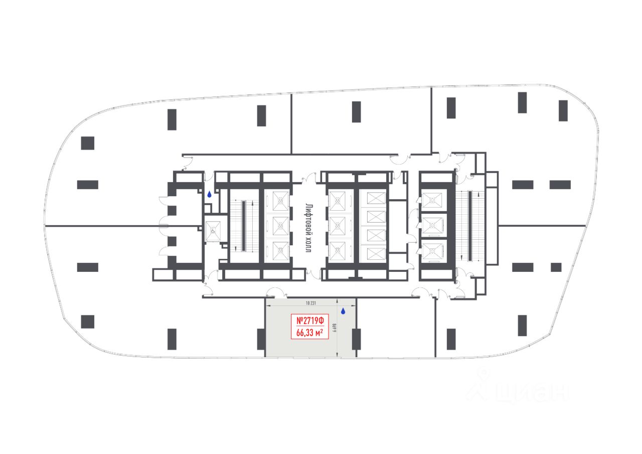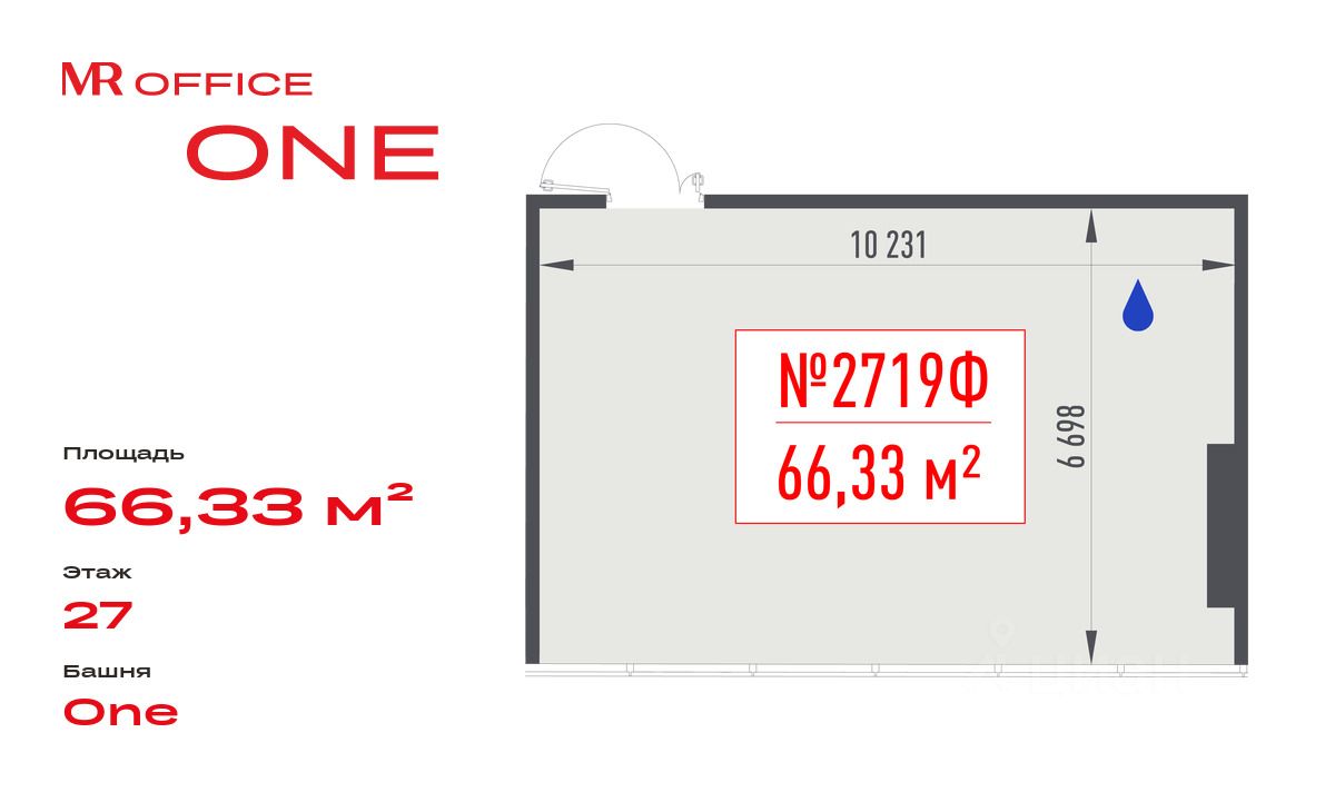 Продается офисное помещение 66.33 м² на 27 этаже в новом небоскребе класса Prime — БЦ ONE от MR Office.