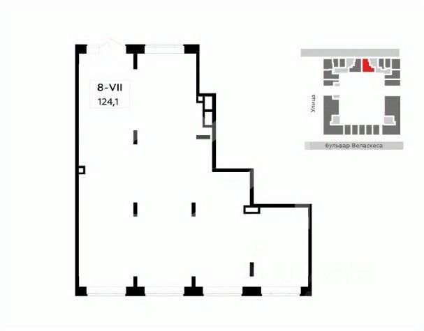 1171316. Предлагаем помещение свободного назначения в ЖК "Испанские кварталы 2", площадью 124.1 кв. м, расположенное на первом этаже 15-этажного жилого дома. Корпус 8.1. Без комиссии для покупателя.