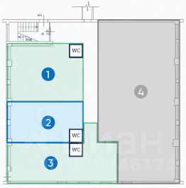 От собственника предлагается к продаже помещение свободного назначения площадью 59,7 м2 на 2 этаже бизнес-центра ВАЛЛЕКС ( на плане помещение 2).