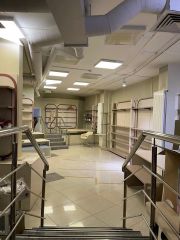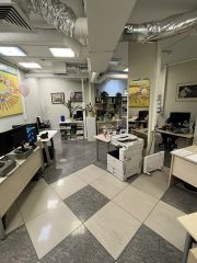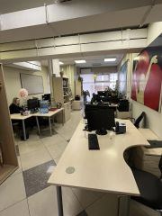 Помещение расположено на первом этаже и в цоколе: площадь первого этажа составляет 1109,3 м², цоколя — 576,5 м². Существенным конкурентным преимуществом является наличие полноценного складского блока в цоколе, что является редкостью для подобных локаций и позволяет эффективно организовать хранение товара, логистику или работу интернет-магазина. Такое сочетание делает объект универсальным решением для бизнеса формата офис + склад, шоурума с хранением или сервисного центра. В помещении выполнена качественная офисная отделка, предусмотрена кабинетная планировка, установлены приточно-вытяжная вентиляция и системы кондиционирования. За счёт панорамных окон в пол обеспечивается высокий уровень естественного освещения, что положительно влияет на комфорт работы и восприятие пространства клиентами.