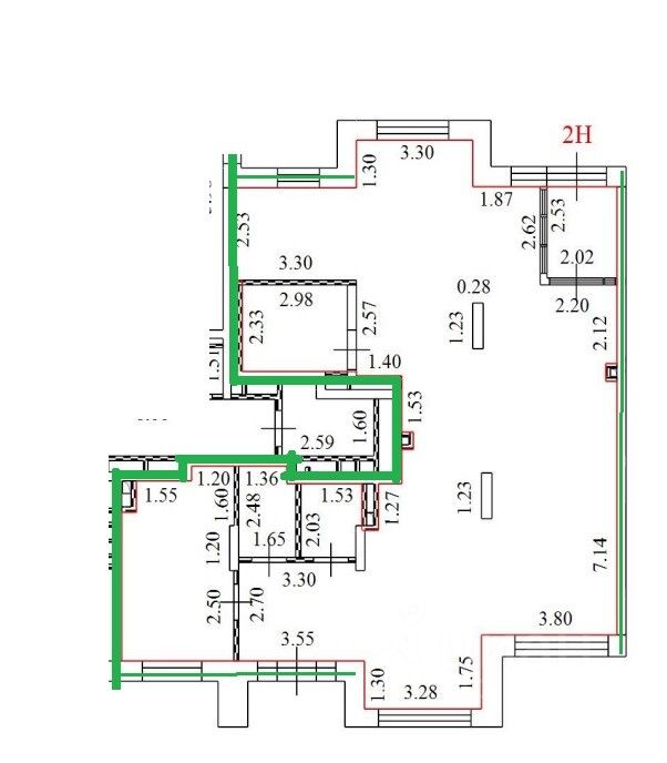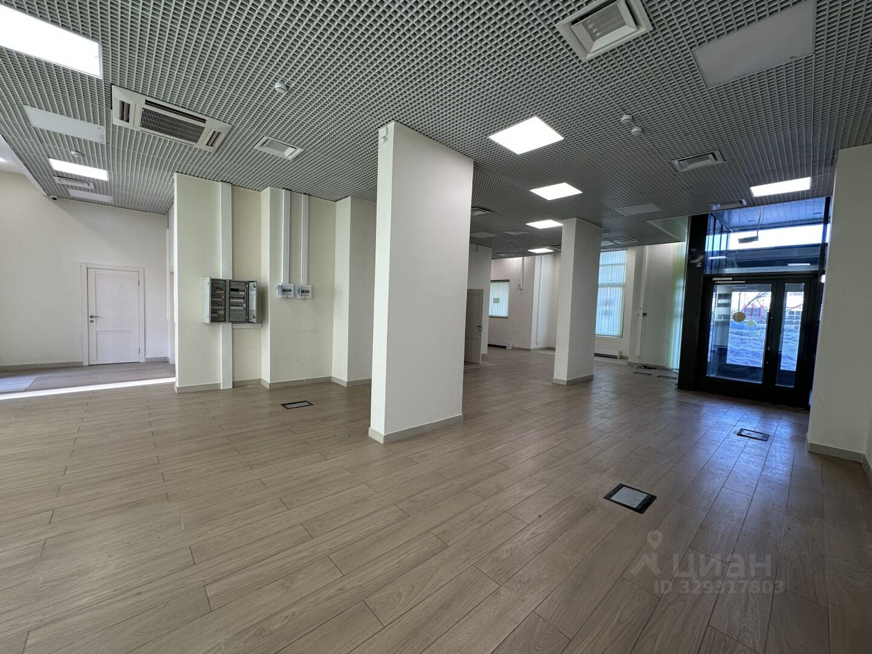 Витринные окна с фасада, два входа, электроэнергия 40 кВт, три санузла и помещение под кухню.