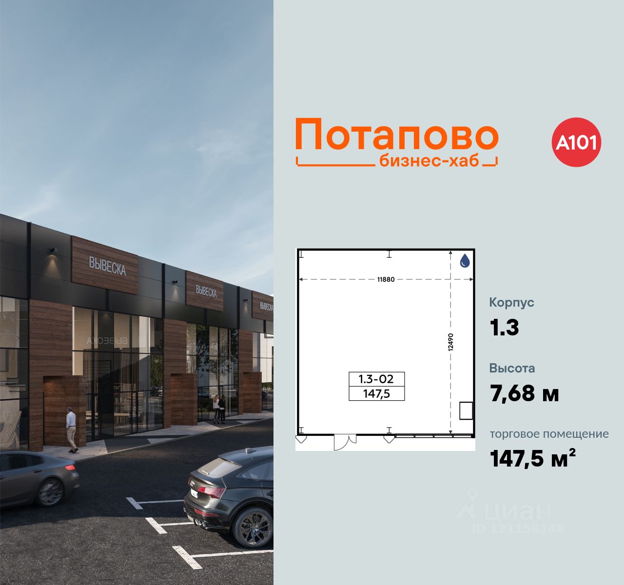 Продажа помещений от 55 м² в бизнес-хабе "Потапово" - универсальный формат с высокой транспортной доступностью, в черте города.