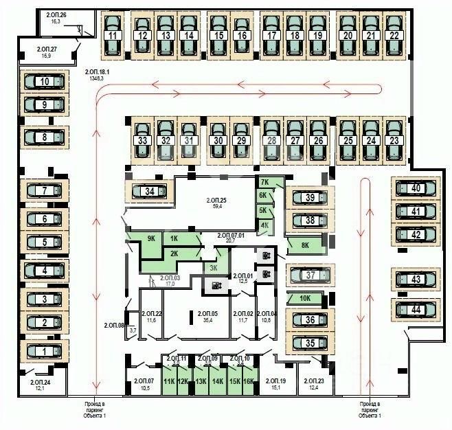 - Подземный паркинг на 44 машино-мест. Наземный паркинг на 11 машино-мест