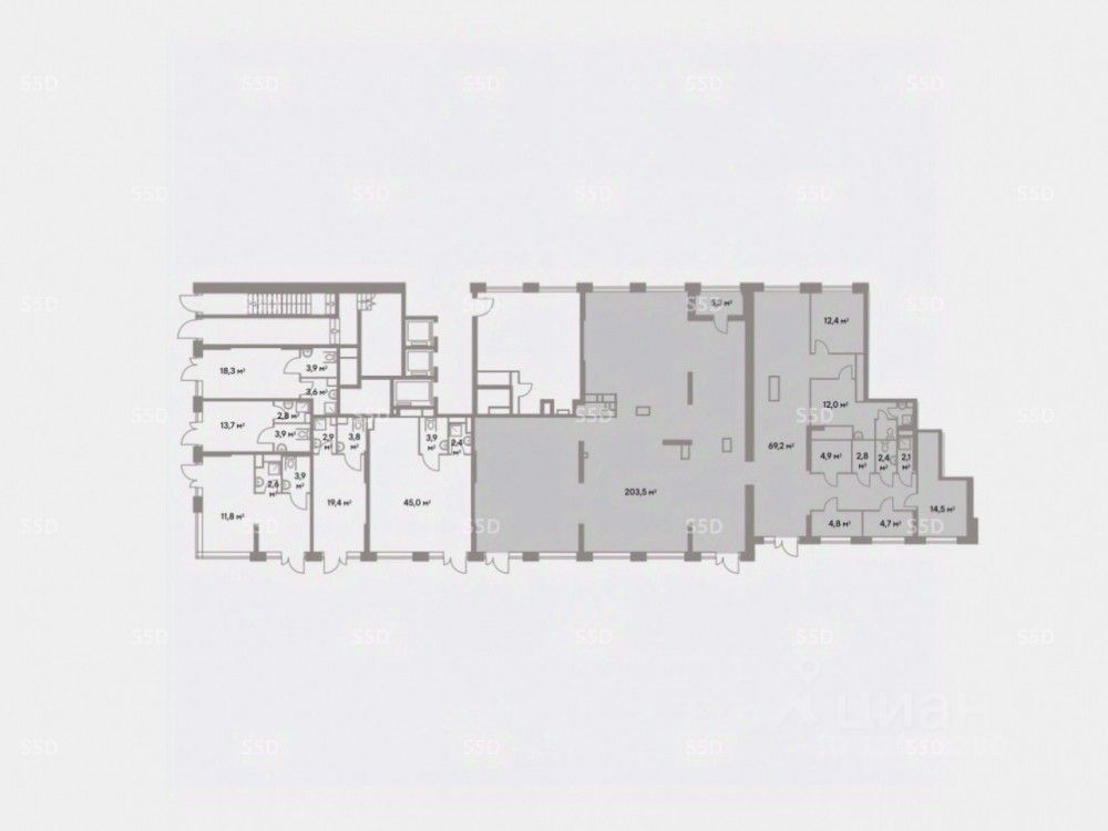 Технические условия: помещение 336,3 м2 на 1-м этаже жилого дома, 3 входа, витрины на обе стороны, электрическая мощность - 70 кВт. Высота потолков - 5.7 м