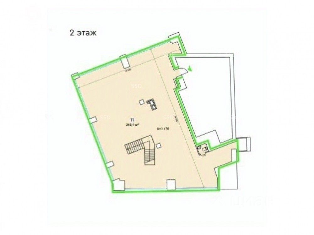 Общая площадь помещения - 220,3 кв. м., первая линия Садового кольца, 2 этаж, отдельная входная группа с первого этажа, свободная планировка, высота потолков - 3,4 м., электрическая мощность по запросу.