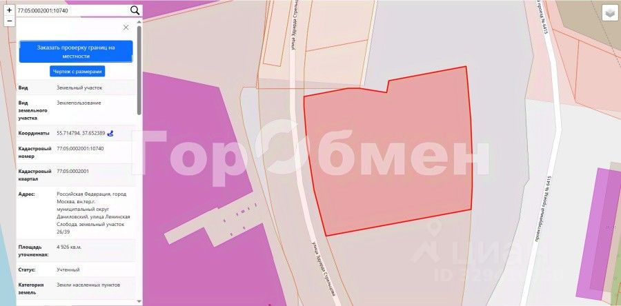 Участок находится на улице Ленинская Слобода участок 26/39 (координаты участка 55.714794, 37.652389) по соседству с премиальным ЖК Foriver!