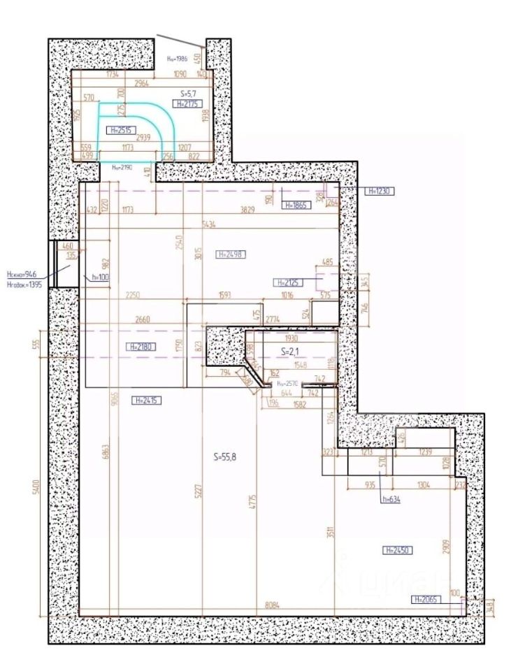 -высота потолков: 2.5 м.