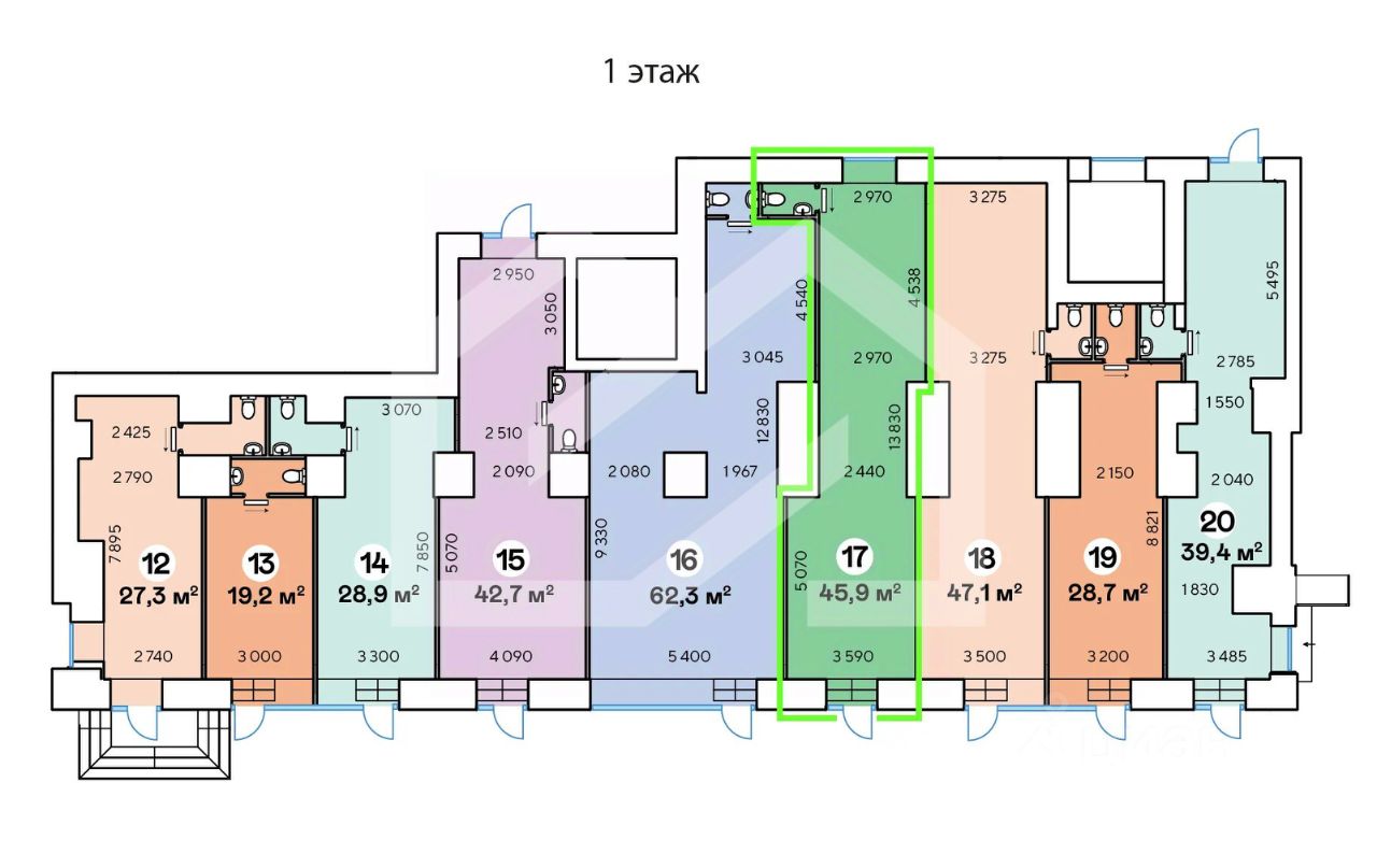 1175389. Предлагаем помещение свободного назначения, площадью 45.9 кв. м, расположенное на первом этаже 9-этажного жилого дома. Без комиссии для покупателя.