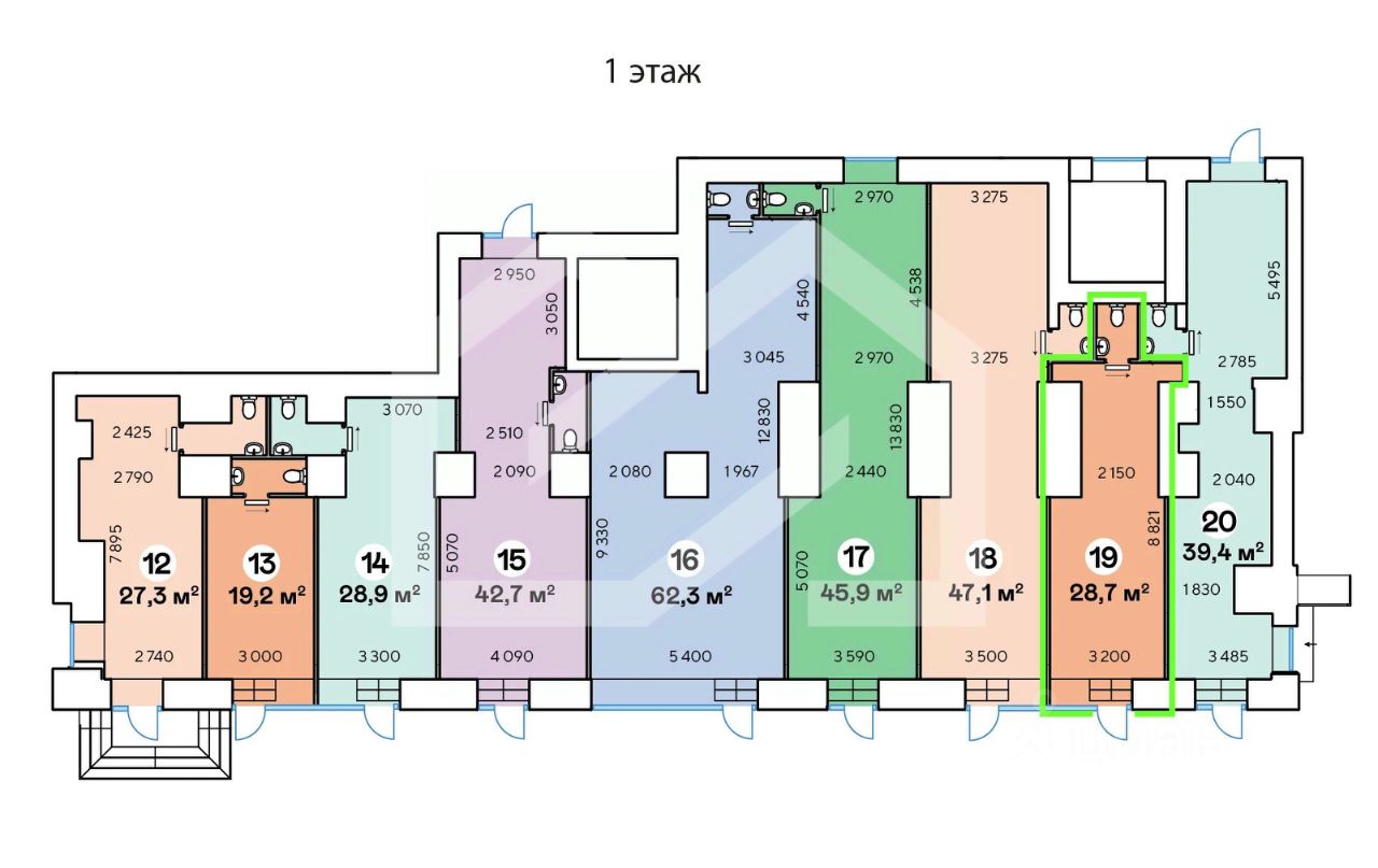 1175407. Предлагаем помещение свободного назначения, площадью 39.4 кв. м, расположенное на первом этаже 9-этажного жилого дома. Без комиссии для покупателя.