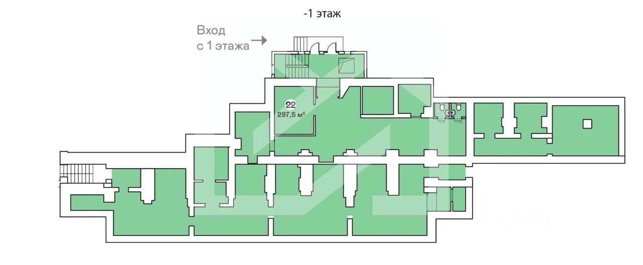 1175426. Предлагаем помещение свободного назначения, площадью 297.5 кв. м, расположенное на цокольном этаже 9-этажного жилого дома. Без комиссии для покупателя.