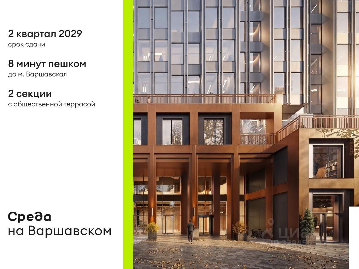 Одновременная близость к транспортным артериям и природным объектам повышает ценность локации. Облик района будет обновляться и формироваться в ближайшие годы, а окружение Среды на Варшавском сформировано: строек вокруг не запланировано, пешеходный и автомобильный трафик будут только усиливаться.