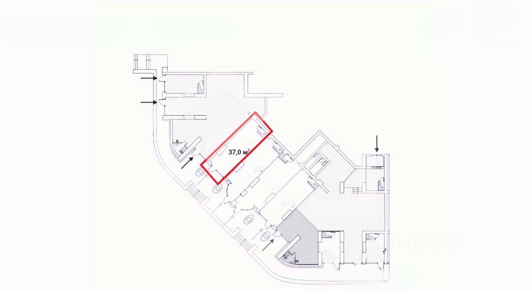 660512. Предлагаем помещение свободного назначения, площадью 37 кв. м., расположенное на первом этаже жилого дома в ЖК "O2xygen". Без комиссии для покупателя.