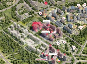 -ЖК состоит из 16 корпусов переменной этажности (от 19 до 24 этажей), рассчитанных на 14 361 квартиру;