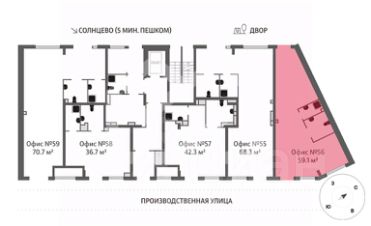 919012. Предлагаем помещение свободного назначения в ЖК "Лучи", корпус 15, площадью 59.1 кв. м, расположенное на первом этаже 24-этажного жилого дома. Так как корректный адрес отсутствует на Яндекс.Картах, введен ближайший. Без комиссии для покупателя.