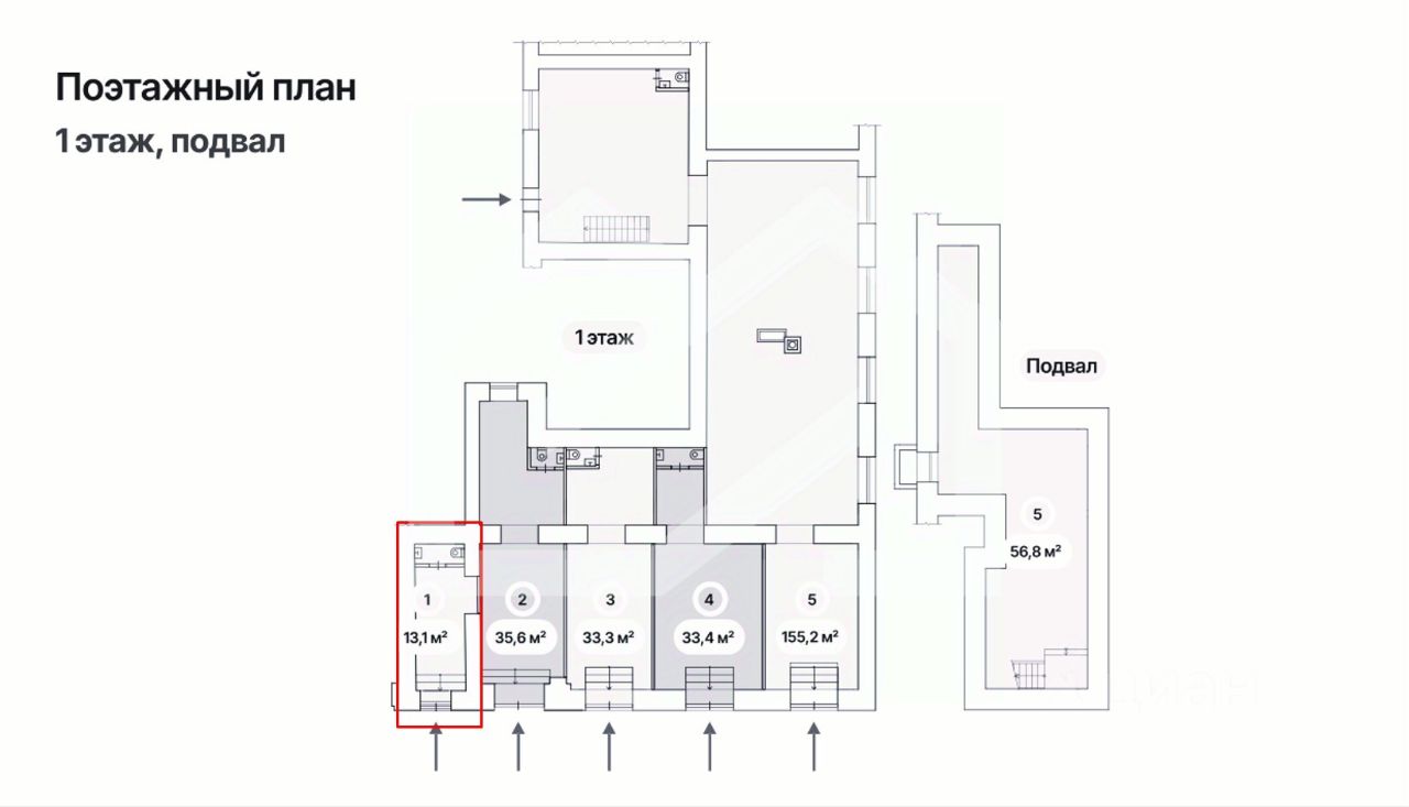 1094522. Предлагаем к приобретению помещение свободного назначения, площадью 13,1 кв. м., расположенное на первом этаже 8-этажного жилого дома. Без комиссии для покупателя.