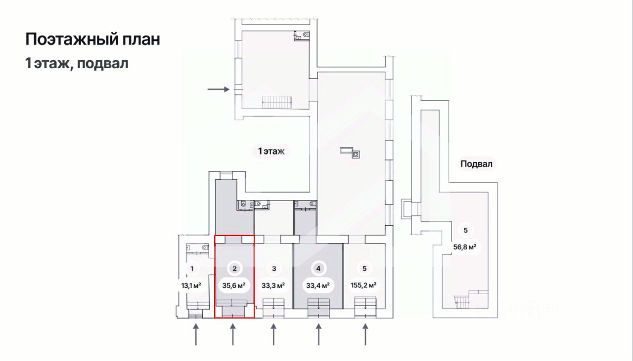 1094530. Предлагаем к приобретению помещение свободного назначения, площадью 35,6 кв. м., расположенное на первом этаже 8-этажного жилого дома. Без комиссии для покупателя.